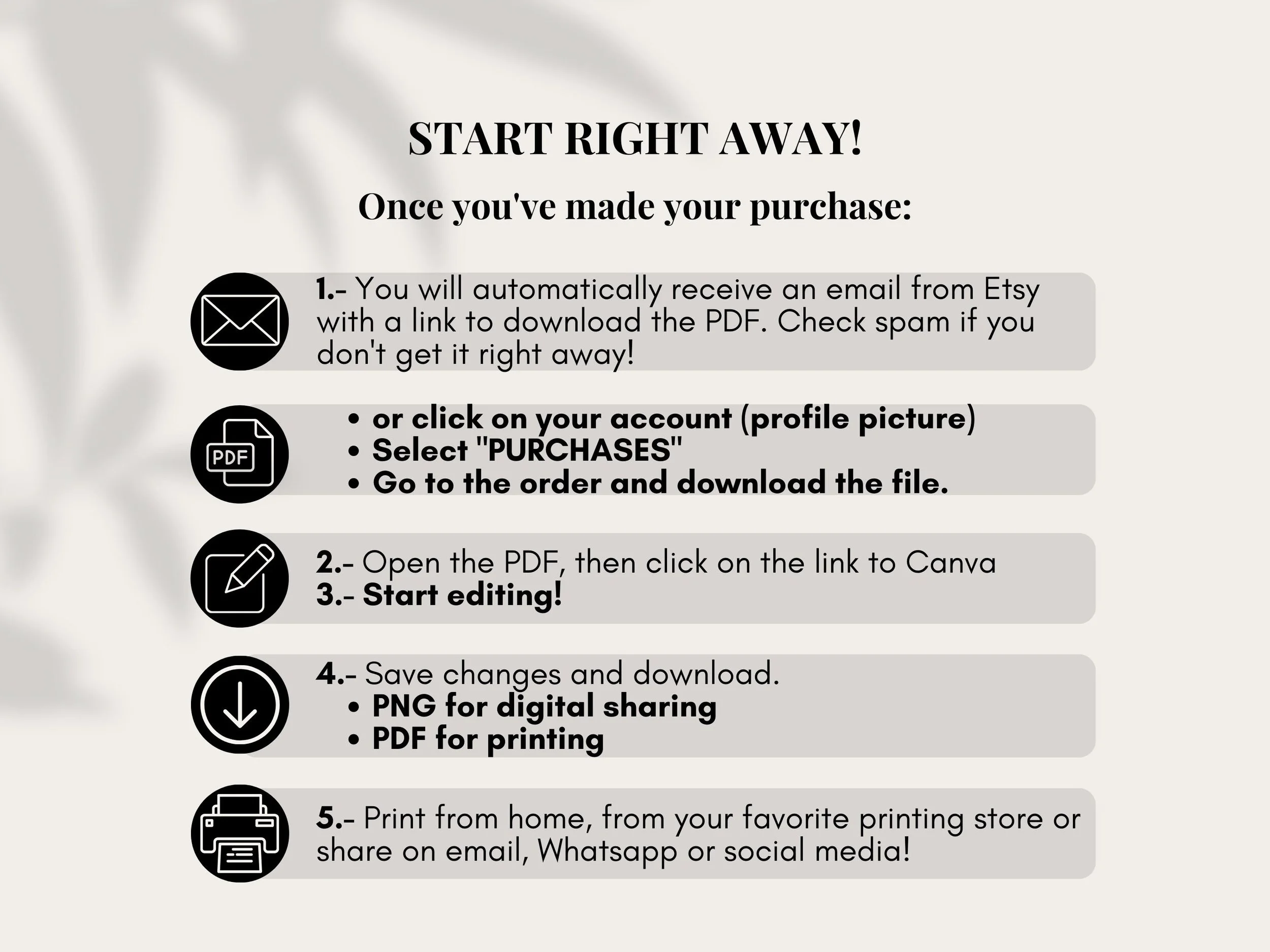 ✿ 1 . PDF with the editing links in Canva of: