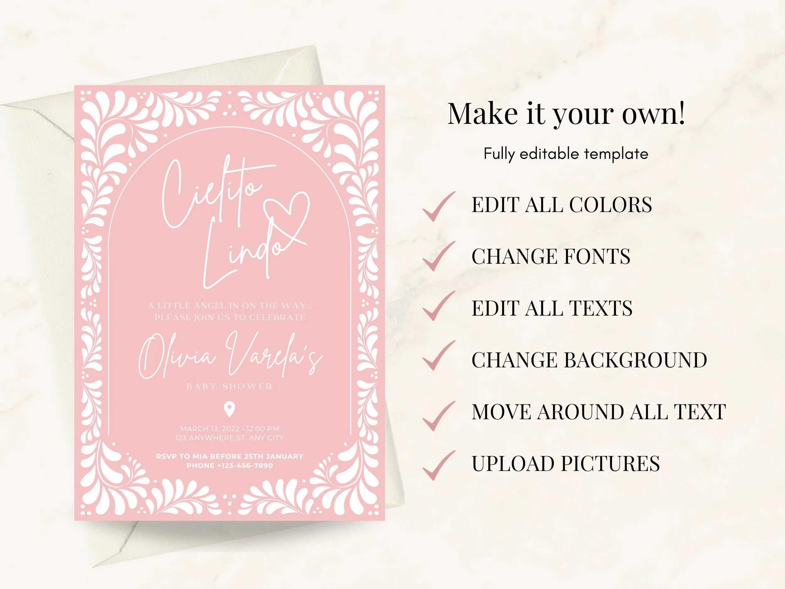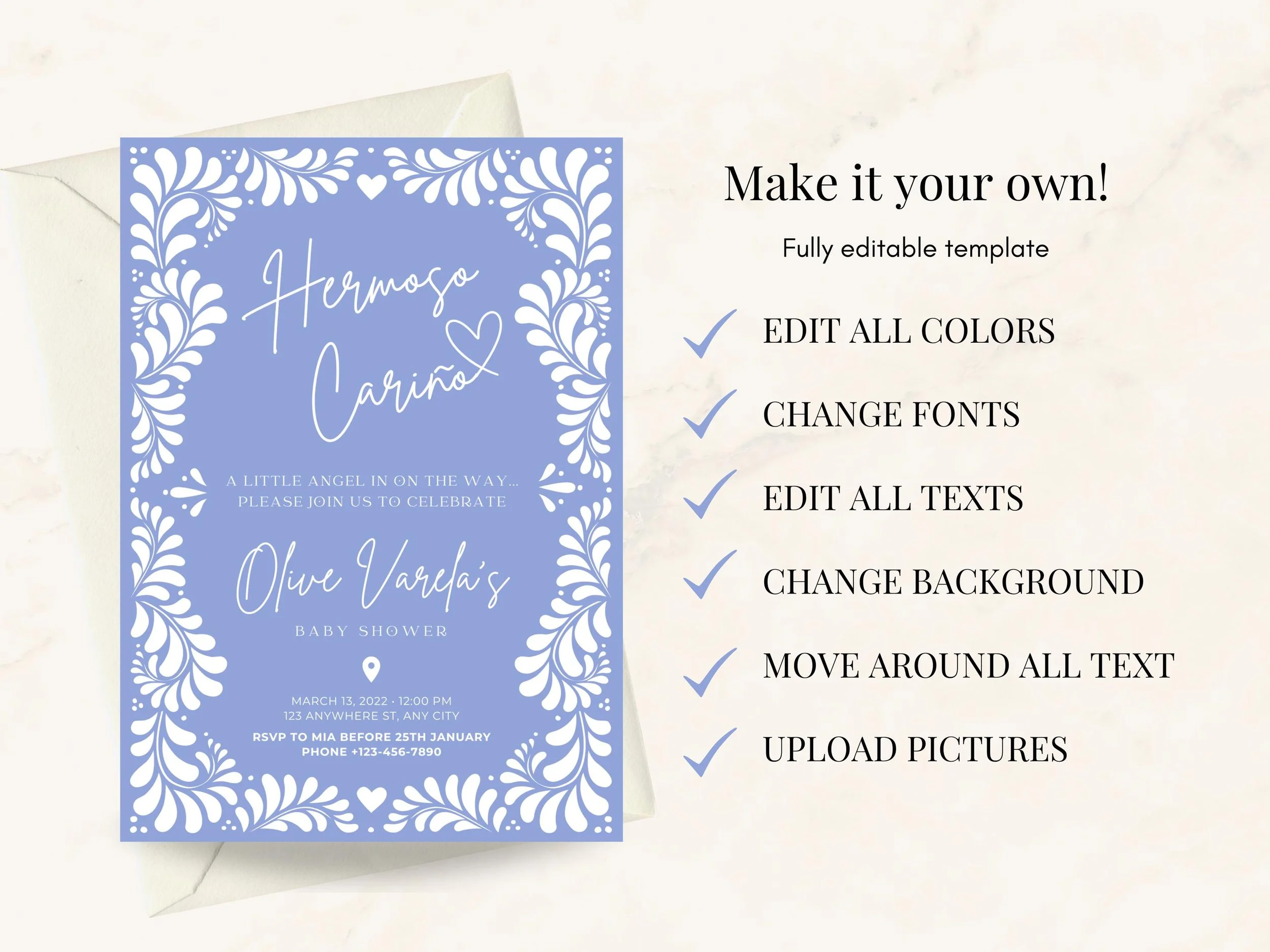 Baby & Kids Categories: Select a Category Memorial Seasonal Cards & Invites Menus Home Decor Seating Charts Wedding Invitations ClipArts / Printables Wedding Stationery Printable Gifts Bridal Shower Quinceanera Wedding Bundles Wall Art Printables Birthday & Fiesta Baby & Kids Signs & Backdrops Baby & Kids Cielito Lindo Baby Shower Invitation Template | Boho Gender neutral baby brunch Invite | Printable Invitation | Canva Edit. Instant Download US$8.50 Add To Cart Added! Cielito Lindo Mexican Talavera Invitation | Pink Birthday Invite, Talavera Inspired | Cielito Lindo Theme | Canva Edit | Instant Download! US$8.50 Add To Cart Added! Floral Pink Talavera Invitation | Cielito Lindo Baby Shower Invite, Talavera Inspired | Cielito Lindo Theme | Canva Edit | Instant Download! US$8.50 Add To Cart Added! Cielito Lindo Baptism Invitation Template | Talavera Baptism Invite | Papel Picado Mexican Bautizo Printable | Canva Edit | Instant Download US$8.50 Add To Cart Added! Cielito Lindo Baby Shower Invitation Template | Talavera Gender neutral baby brunch Invite | Printable Invite | Canva Edit. Instant Download US$6.50 Add To Cart Added! Baptism Invitation Template Set | Modern Baptism Invite Card | Talavera Inspired | Printable Invitation | Easy Canva Edit | Instant Download US$8.50 Add To Cart Added! Cielito Lindo Baby Shower Invitation Template | Talavera Gender neutral baby brunch Invite | Printable Invite | Canva Edit. Instant Download US$8.50 Add To Cart Added! Cielito Lindo Mexican Talavera Invitation | Green Birthday Invite, Talavera Inspired | Cielito Lindo Theme | Canva Edit | Instant Download! US$8.50 Add To Cart Added! Cielito Lindo Mexican Talavera Invitation Set | Green Talavera Baby Shower Stationary | Cielito Lindo Theme | Canva Edit | Instant Download! US$11.50 Add To Cart Added! Cielito Lindo Baby Shower Invitation Template | Boho Gender neutral baby brunch Invite | Printable Invitation | Canva Edit. Instant Download US$8.50 Add To Cart Added! Cielito Lindo Pink Talavera Invitation | Mexican Papel Picado Baby Shower Invite | Pink Cielito Lindo Theme | Canva Edit | Instant Download! US$8.50 Add To Cart Added! Cielito Lindo Mexican Talavera Invitation | Pink Baby Shower Invite, Talavera Inspired | Cielito Lindo Theme | Canva Edit | Instant Download US$8.50 Add To Cart Added! Cielito Lindo Talavera Invitation Bundle | Pink Baby Shower Invite, Talavera Inspired | Cielito Lindo Theme | Canva Edit | Instant Download! US$29.50 Add To Cart Added! Hermoso Cariño Shower Invitation Set | Talavera Baby Shower Invite | Cielito Lindo Theme | Papel Picado Baby | Canva Edit | Instant Download US$8.50 Add To Cart Added! Hermoso Cariño Blue Baby Shower Invitation | Talavera Shower Invite | Cielito Lindo Theme| Papel Picado Baby | Canva Edit | Instant Download US$8.50 Add To Cart Added! Pink Cielito Lindo Talavera Invitation | Baby Girl Shower Invite | Pink Talavera Print | Cielito Lindo Theme | Canva Edit | Instant Download US$8.50 Add To Cart Added! Holy Communion Invitation Templates | First Communion Invite | Talavera Inspired | Printable Invitation | Easy Canva Edit | Instant Download US$8.50 Add To Cart Added!